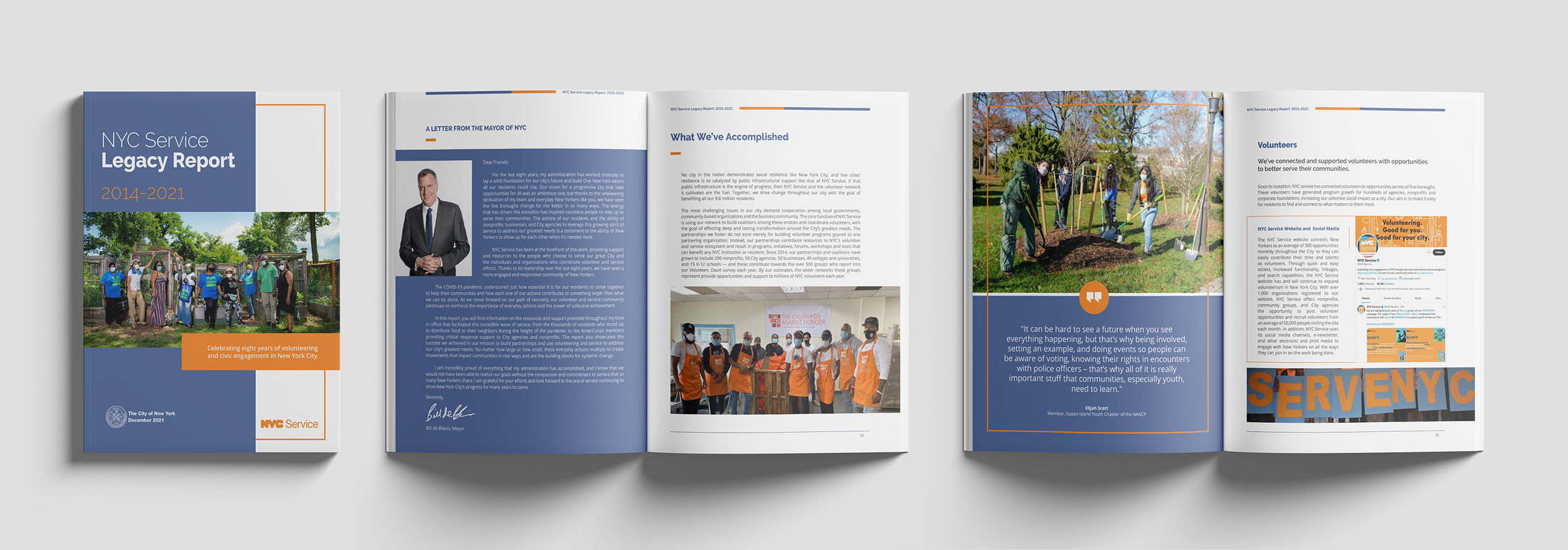 We’re proud to have been the creative force behind the NYC Service Legacy Report, capturing eight years (2014–2021) of dedication, partnership, and innovation across New York City. Through thoughtful writing and design, we highlighted the impactful collaborations among nonprofits, residents, businesses, and City agencies. The report celebrates NYC Service’s growth in civic engagement and community impact while inspiring continued commitment to service. At Viney Group, we craft stories that resonate, inform, and drive action.
